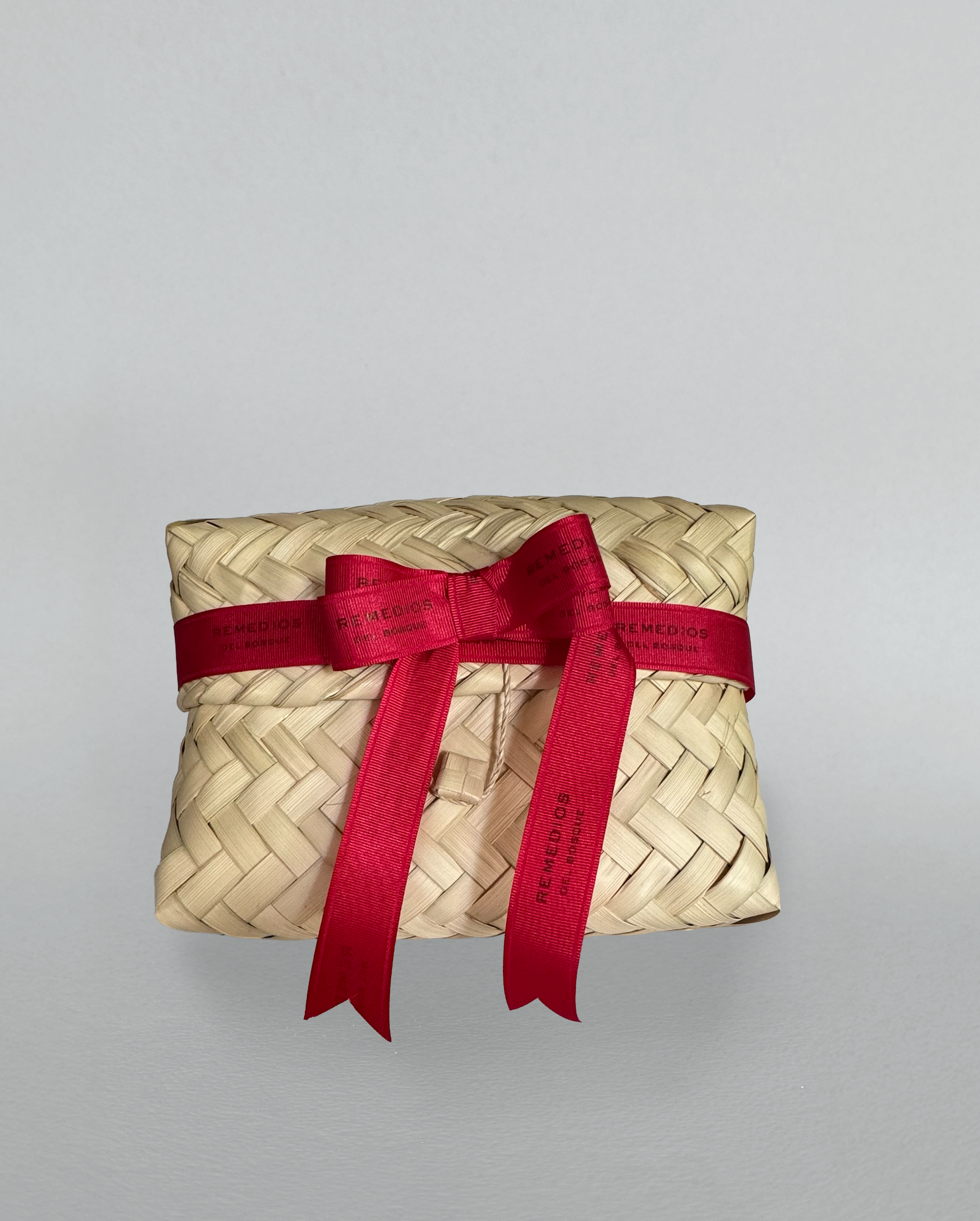 Cosmetiquera de palma hecha a mano por la familia Flores Torres de la localidad Tlamacazapa en Taxco de Alarcón, Guerrero.